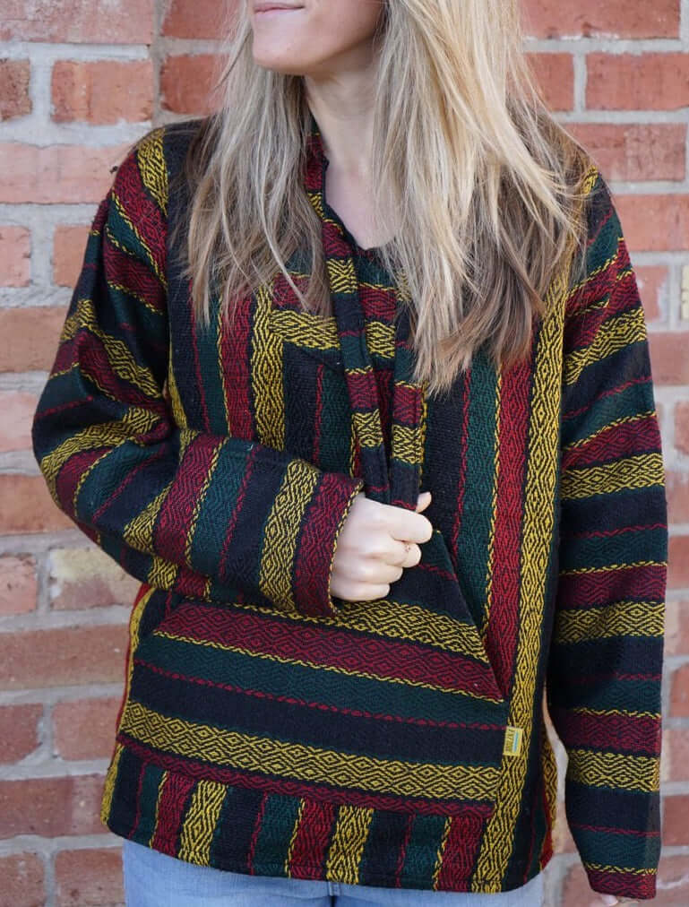 - Our Baja Hoodies aka "Drug Rugs" are all Handwoven from 100% Recycled Fibers, hand-picked to ensure the highest quality!